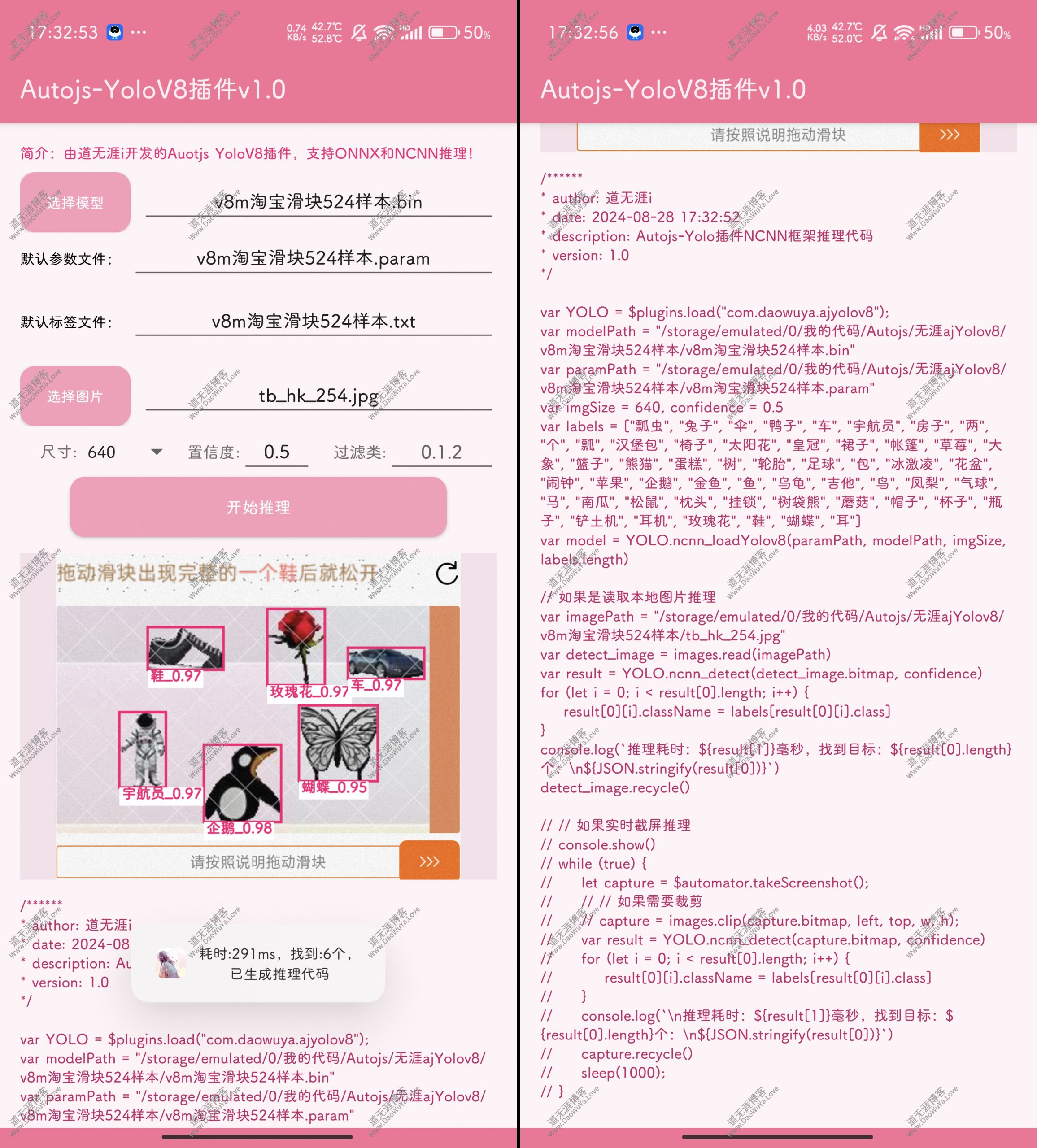 - 在前天,我成功把Autojs的YoloV8插件开发出来了,各种功能都符合预想,但是yolov8训练出来的pt模型导出麻烦,比如修改代码文件后先导出onnx,再用pnnx工具将onnx导出ncnn才能使用